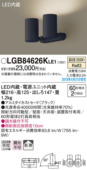 Panasonic ¥¹¥Ý¥Ã¥È¥é¥¤¥È LGB84626KLE1