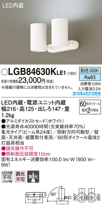 Panasonic ¥¹¥Ý¥Ã¥È¥é¥¤¥È LGB84630KLE1
