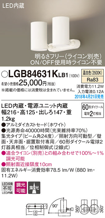 Panasonic ¥¹¥Ý¥Ã¥È¥é¥¤¥È LGB84631KLB1