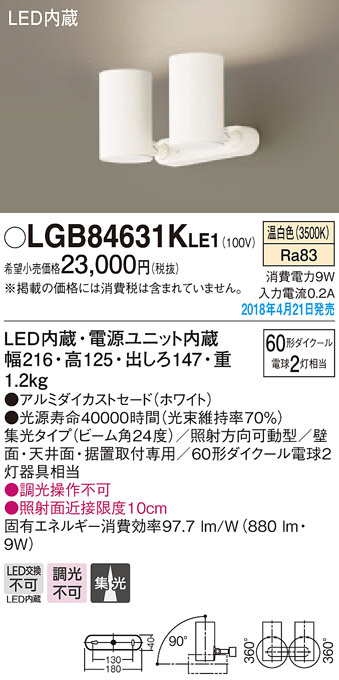 Panasonic ¥¹¥Ý¥Ã¥È¥é¥¤¥È LGB84631KLE1