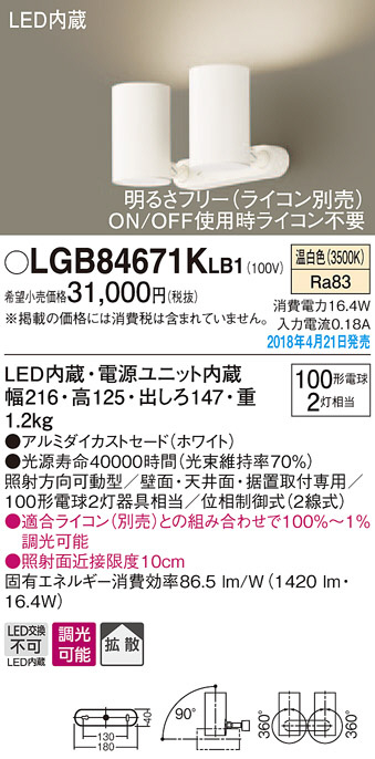 Panasonic ¥¹¥Ý¥Ã¥È¥é¥¤¥È LGB84671KLB1