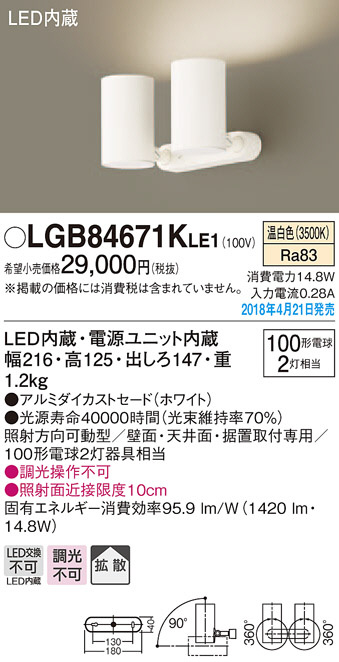 Panasonic ¥¹¥Ý¥Ã¥È¥é¥¤¥È LGB84671KLE1