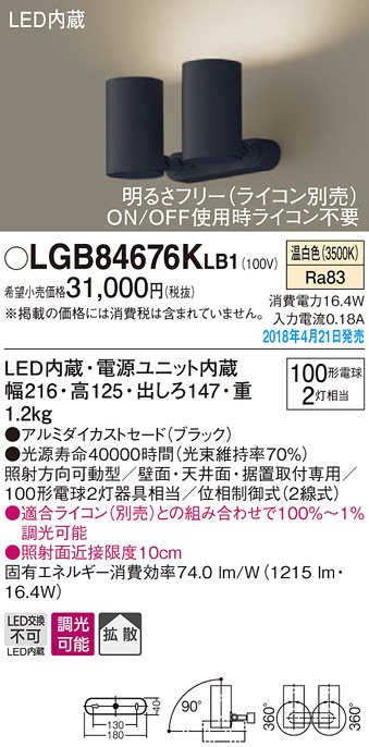 Panasonic ¥¹¥Ý¥Ã¥È¥é¥¤¥È LGB84676KLB1
