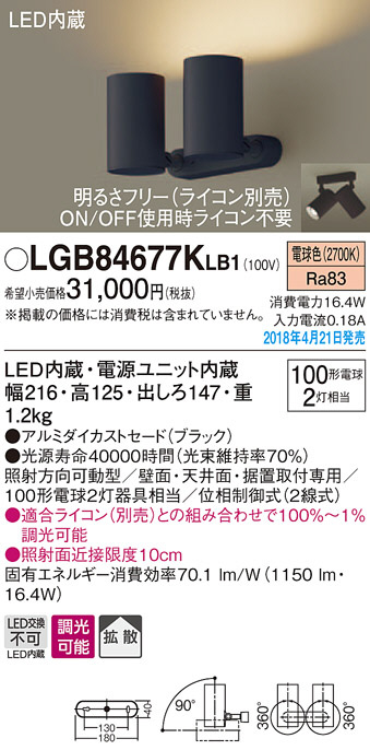 Panasonic ¥¹¥Ý¥Ã¥È¥é¥¤¥È LGB84677KLB1