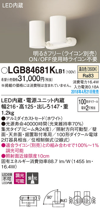 Panasonic ¥¹¥Ý¥Ã¥È¥é¥¤¥È LGB84681KLB1