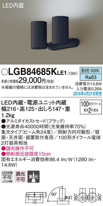 Panasonic ¥¹¥Ý¥Ã¥È¥é¥¤¥È LGB84685KLE1