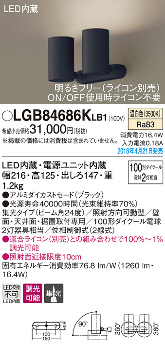 Panasonic ¥¹¥Ý¥Ã¥È¥é¥¤¥È LGB84686KLB1
