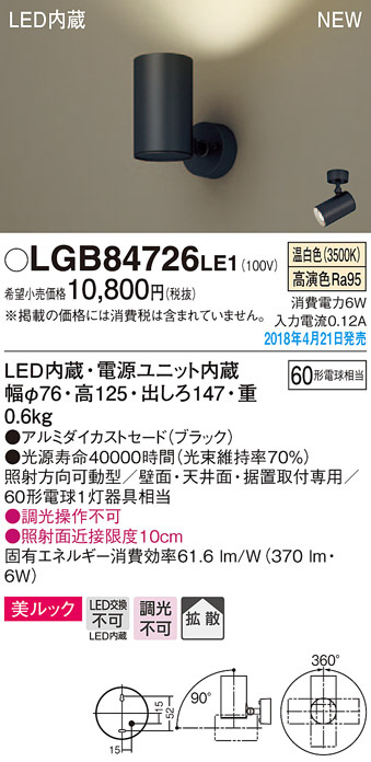 Panasonic ¥¹¥Ý¥Ã¥È¥é¥¤¥È LGB84726LE1