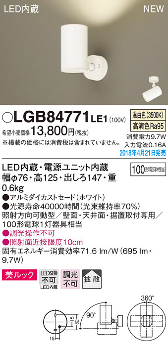 Panasonic ¥¹¥Ý¥Ã¥È¥é¥¤¥È LGB84771LE1