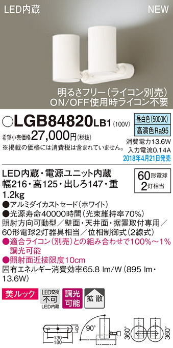 Panasonic ¥¹¥Ý¥Ã¥È¥é¥¤¥È LGB84820LB1