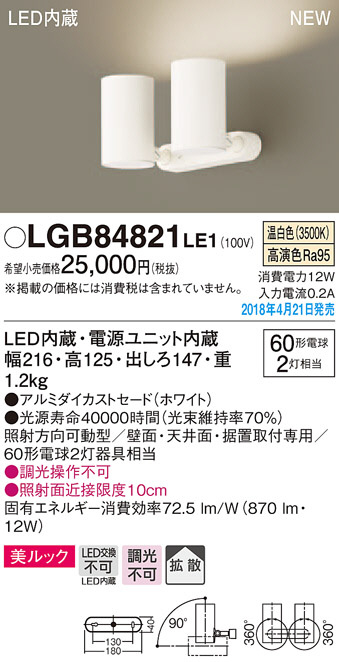 Panasonic ¥¹¥Ý¥Ã¥È¥é¥¤¥È LGB84821LE1