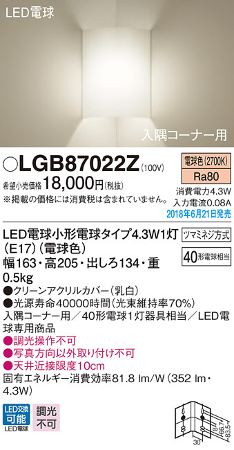 Panasonic ¥Ö¥é¥±¥Ã¥È LGB87022Z