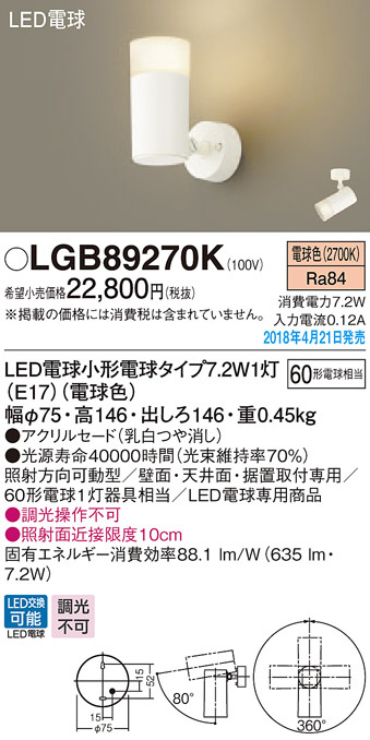 Panasonic ¥¹¥Ý¥Ã¥È¥é¥¤¥È LGB89270K