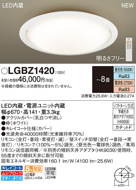 Panasonic ¥·¡¼¥ê¥ó¥°¥é¥¤¥È LGBZ1420