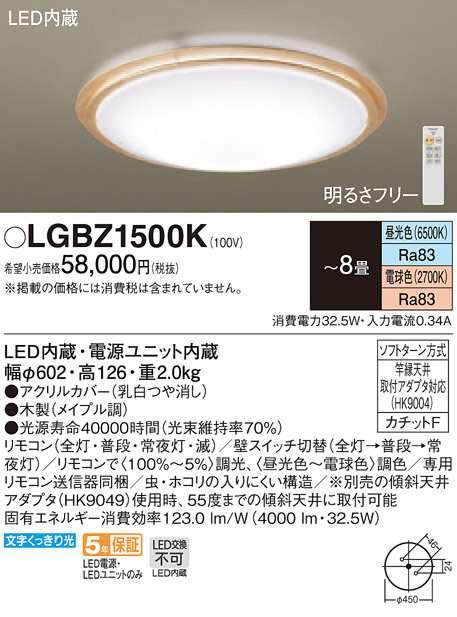 Panasonic ¥·¡¼¥ê¥ó¥°¥é¥¤¥È LGBZ1500K
