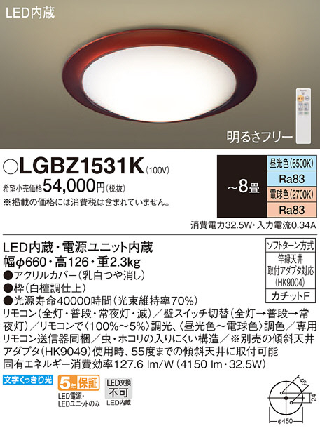 Panasonic ¥·¡¼¥ê¥ó¥°¥é¥¤¥È LGBZ1531K