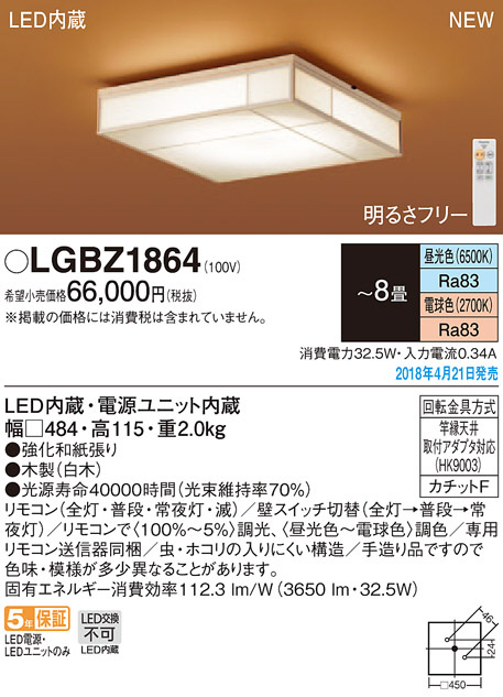 Panasonic ¥·¡¼¥ê¥ó¥°¥é¥¤¥È LGBZ1864