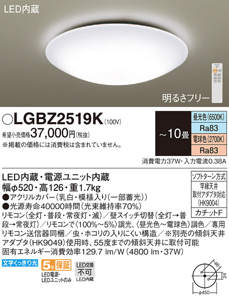 Panasonic ¥·¡¼¥ê¥ó¥°¥é¥¤¥È LGBZ2519K