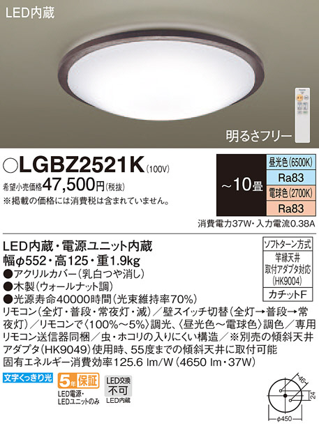 Panasonic ¥·¡¼¥ê¥ó¥°¥é¥¤¥È LGBZ2521K