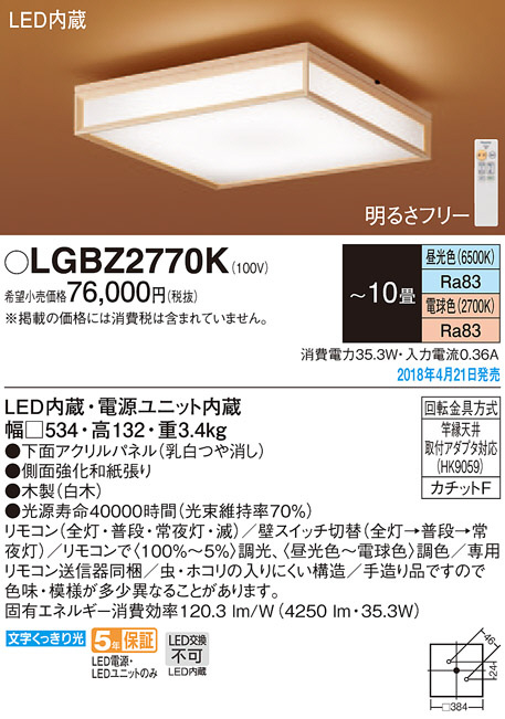 Panasonic ¥·¡¼¥ê¥ó¥°¥é¥¤¥È LGBZ2770K