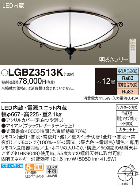 Panasonic ¥·¡¼¥ê¥ó¥°¥é¥¤¥È LGBZ3513K