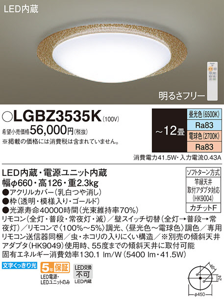 Panasonic ¥·¡¼¥ê¥ó¥°¥é¥¤¥È LGBZ3535K
