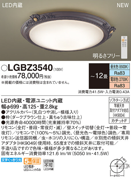 Panasonic ¥·¡¼¥ê¥ó¥°¥é¥¤¥È LGBZ3540