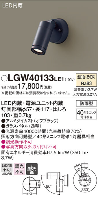 Panasonic ¥¨¥¯¥¹¥Æ¥ê¥¢¥¹¥Ý¥Ã¥È¥é¥¤¥È LGW40133LE1