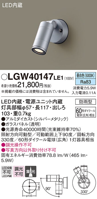 Panasonic ¥¨¥¯¥¹¥Æ¥ê¥¢¥¹¥Ý¥Ã¥È¥é¥¤¥È LGW40147LE1
