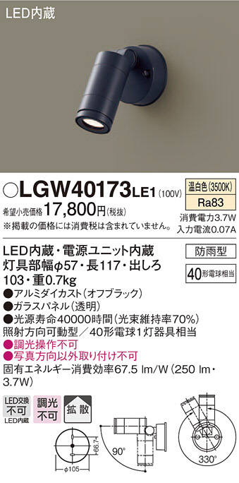 Panasonic ¥¨¥¯¥¹¥Æ¥ê¥¢¥¹¥Ý¥Ã¥È¥é¥¤¥È LGW40173LE1