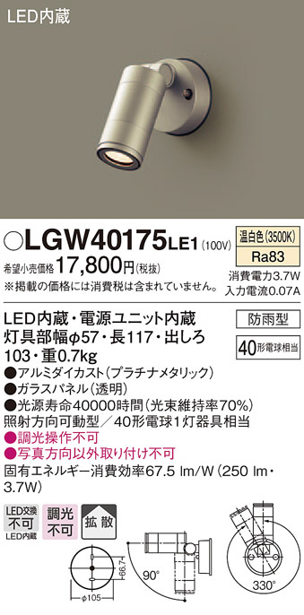 Panasonic ¥¨¥¯¥¹¥Æ¥ê¥¢¥¹¥Ý¥Ã¥È¥é¥¤¥È LGW40175LE1