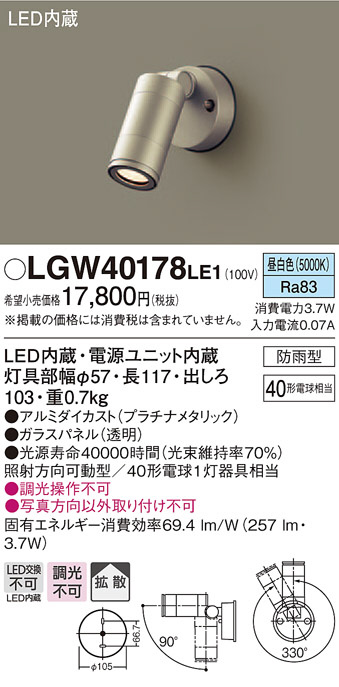 Panasonic ¥¨¥¯¥¹¥Æ¥ê¥¢¥¹¥Ý¥Ã¥È¥é¥¤¥È LGW40178LE1