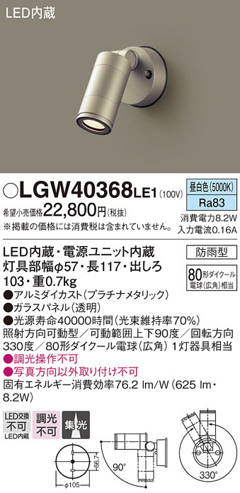 Panasonic ¥¨¥¯¥¹¥Æ¥ê¥¢¥¹¥Ý¥Ã¥È¥é¥¤¥È LGW40368LE1