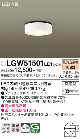 Panasonic ¥¨¥¯¥¹¥Æ¥ê¥¢¥é¥¤¥È LGW51501LE1
