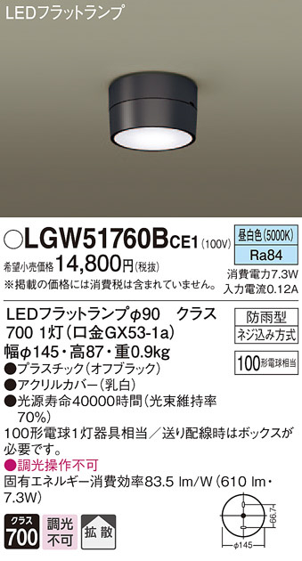 Panasonic ¥¨¥¯¥¹¥Æ¥ê¥¢¥é¥¤¥È LGW51760BCE1