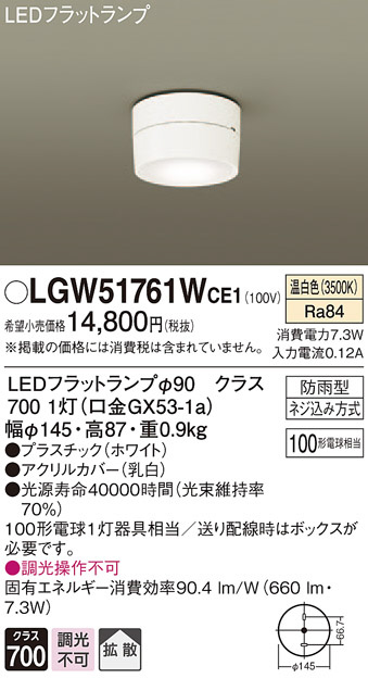 Panasonic ¥¨¥¯¥¹¥Æ¥ê¥¢¥é¥¤¥È LGW51761WCE1