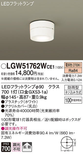 Panasonic ¥¨¥¯¥¹¥Æ¥ê¥¢¥é¥¤¥È LGW51762WCE1