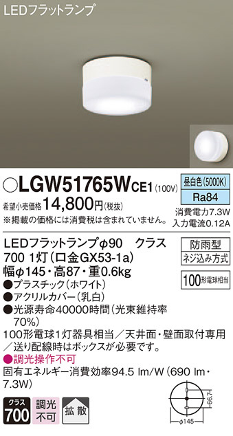 Panasonic ¥¨¥¯¥¹¥Æ¥ê¥¢¥é¥¤¥È LGW51765WCE1