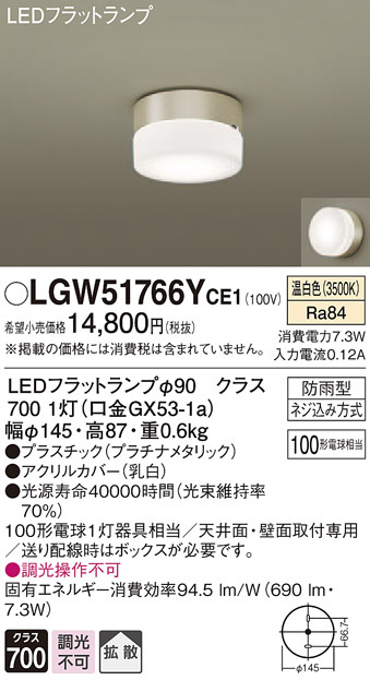 Panasonic ¥¨¥¯¥¹¥Æ¥ê¥¢¥é¥¤¥È LGW51766YCE1