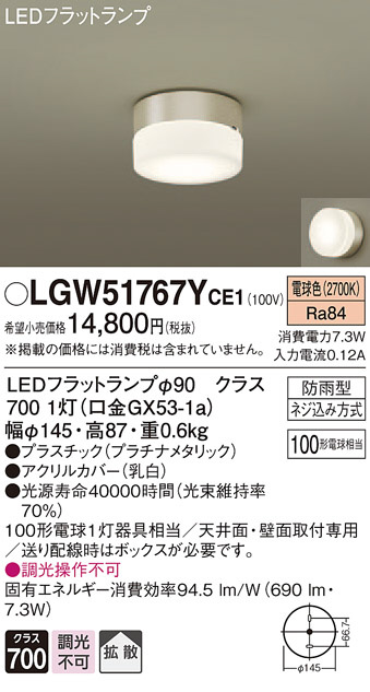 Panasonic ¥¨¥¯¥¹¥Æ¥ê¥¢¥é¥¤¥È LGW51767YCE1