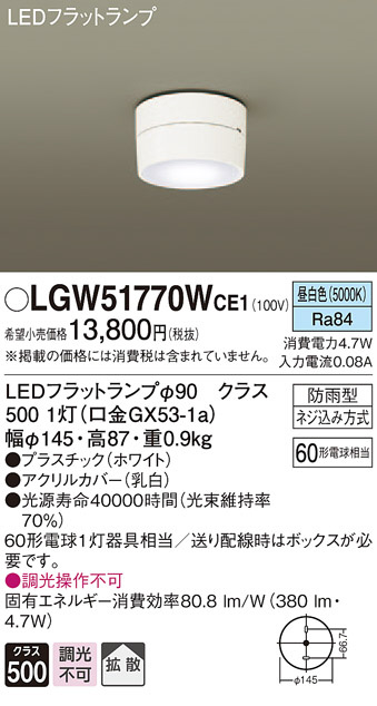 Panasonic ¥¨¥¯¥¹¥Æ¥ê¥¢¥é¥¤¥È LGW51770WCE1