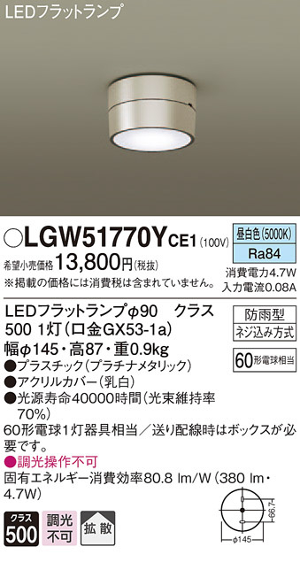 Panasonic ¥¨¥¯¥¹¥Æ¥ê¥¢¥é¥¤¥È LGW51770YCE1