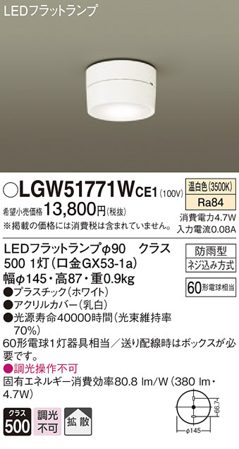 Panasonic ¥¨¥¯¥¹¥Æ¥ê¥¢¥é¥¤¥È LGW51771WCE1
