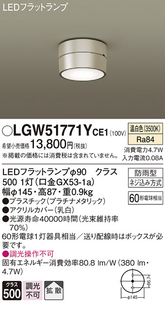 Panasonic ¥¨¥¯¥¹¥Æ¥ê¥¢¥é¥¤¥È LGW51771YCE1