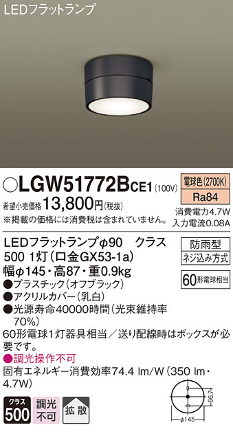 Panasonic ¥¨¥¯¥¹¥Æ¥ê¥¢¥é¥¤¥È LGW51772BCE1