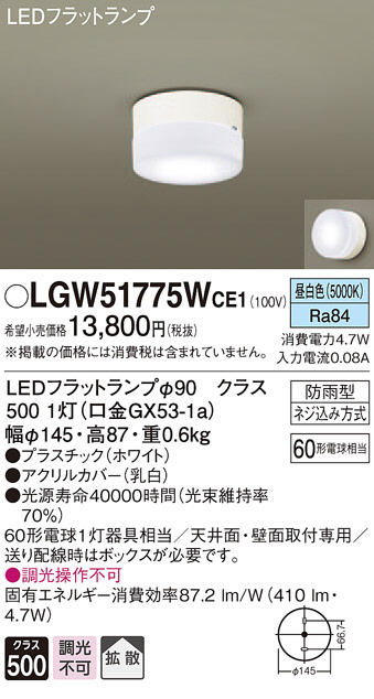 Panasonic ¥¨¥¯¥¹¥Æ¥ê¥¢¥é¥¤¥È LGW51775WCE1