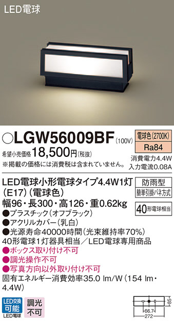 Panasonic ¥¨¥¯¥¹¥Æ¥ê¥¢¥é¥¤¥È LGW56009BF
