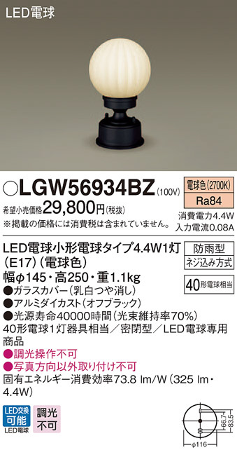 Panasonic ¥¨¥¯¥¹¥Æ¥ê¥¢¥é¥¤¥È LGW56934BZ
