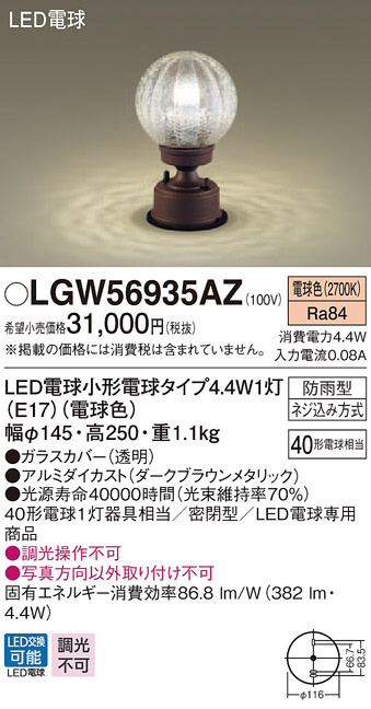 Panasonic ¥¨¥¯¥¹¥Æ¥ê¥¢¥é¥¤¥È LGW56935AZ