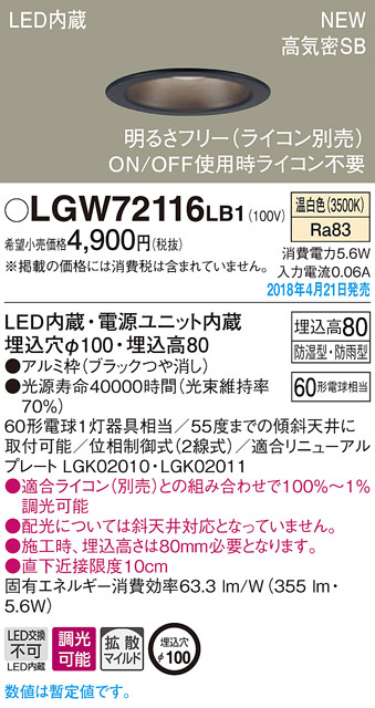 Panasonic ¥À¥¦¥ó¥é¥¤¥È LGW72116LB1